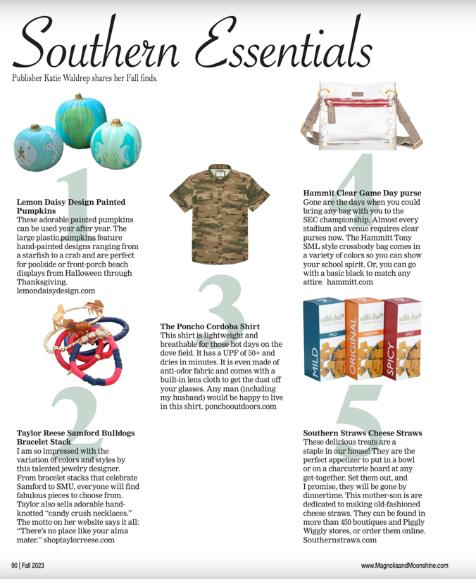 Our Pre-Game beaded hoop earrings & Samford bracelet stack was featured in both print and digital versions of Katie's Picks in the Fall 2023 issue.