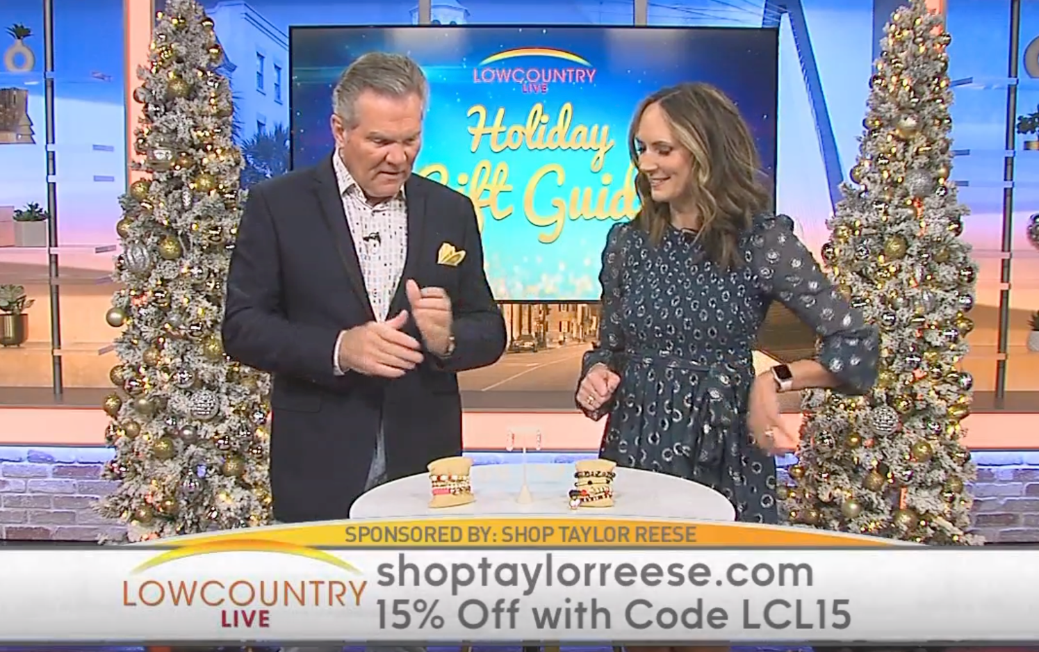 Shop Taylor Reese was featured on Charleston's local morning show, Low Country Live. Two styled bracelet sets and the best-selling pre-game beaded hoop earrings were featured in the holiday 2023 gift guide.
