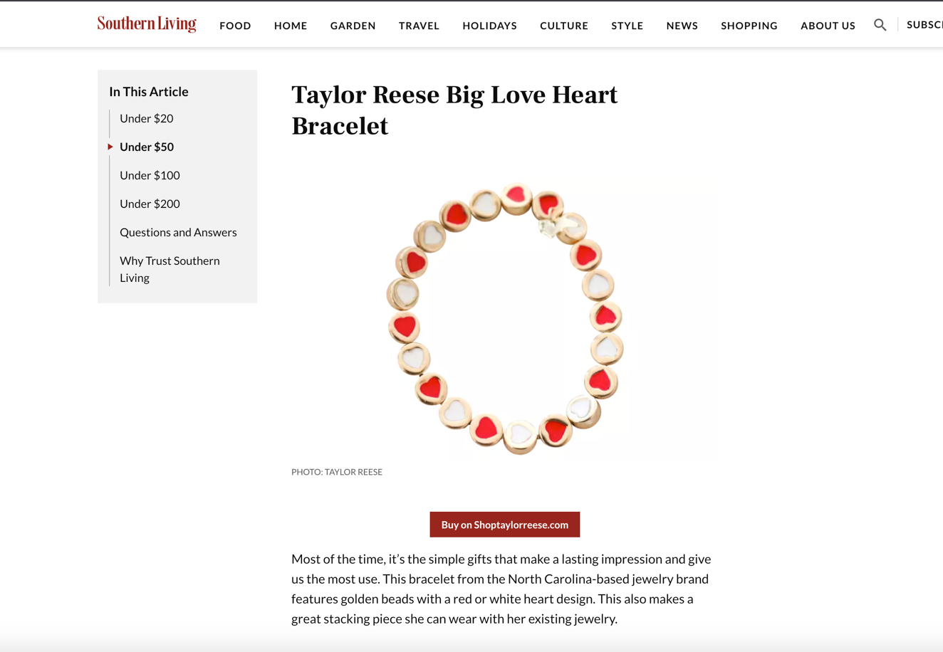 The Big Love heart bracelet was featured in Southern Living Valentine's Day Gift Guide: The 60 Best Valentine’s Day Gifts For Her Of 2024.