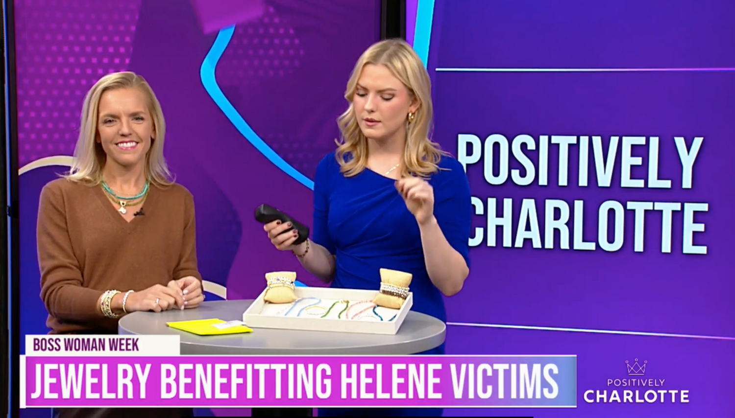 Taylor went on Charlotte local morning show Positively Charlotte to talk about the Hurricane Helene relief collection and show some of the styles.