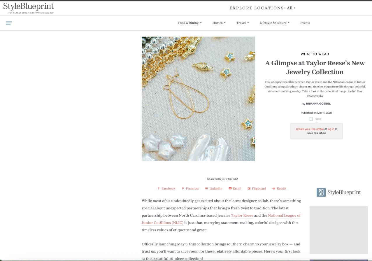 "While most of us undoubtedly get excited about the latest designer collab, there’s something special about unexpected partnerships that bring a fresh twist to tradition. The latest partnership between North Carolina-based jeweler Taylor Reese and the National League of Junior Cotillions (NLJC) is just that, marrying statement-making, colorful designs with the timeless values of etiquette and grace."