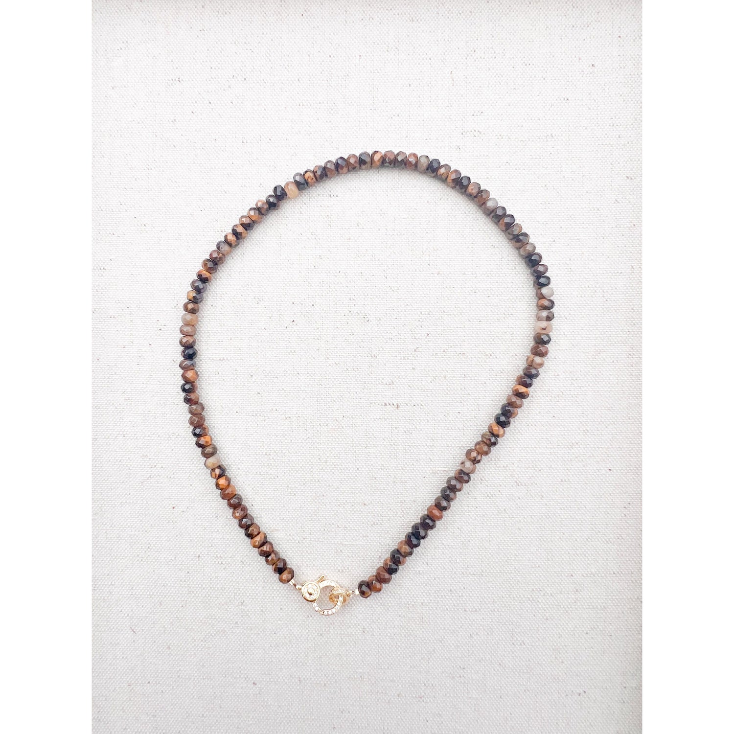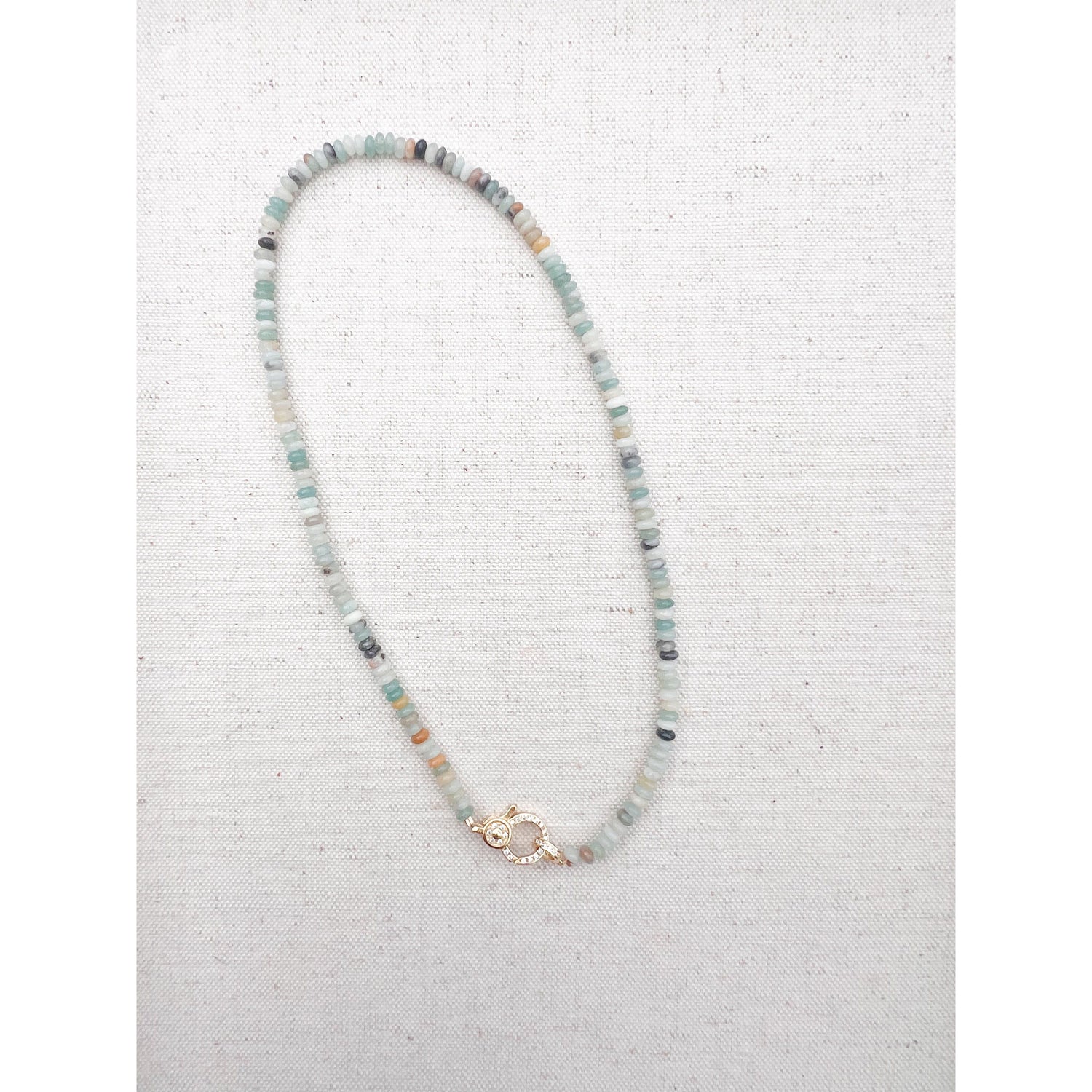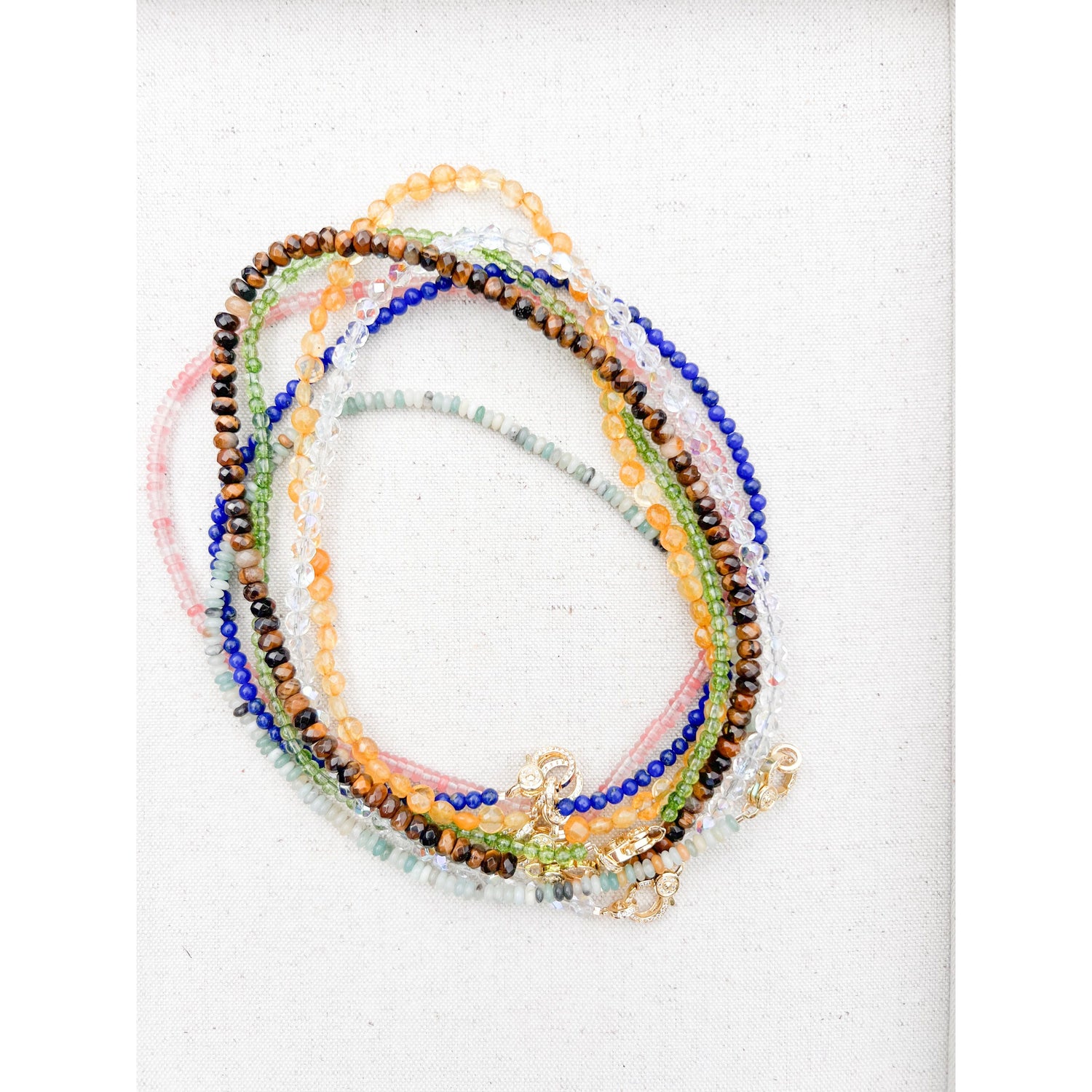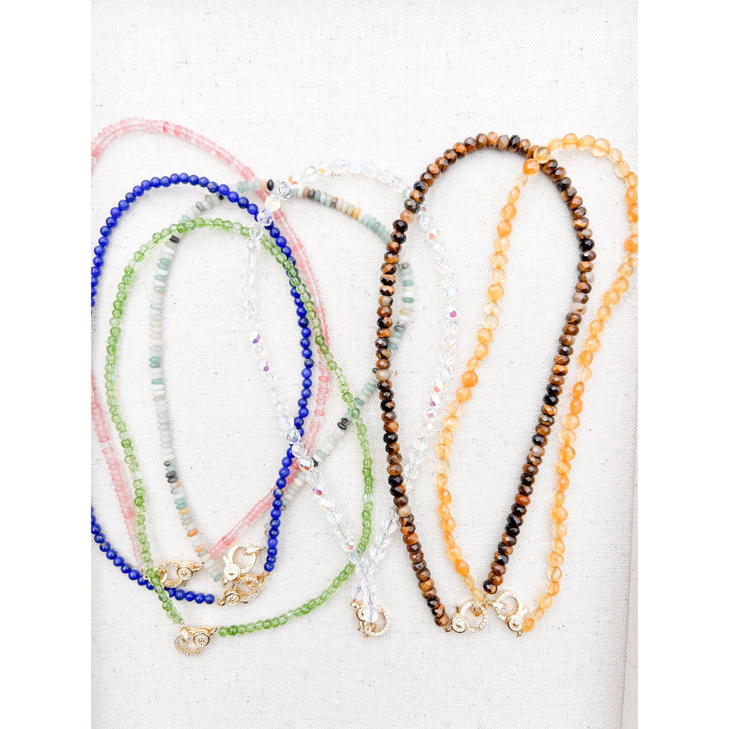 - 16.5"-17" beaded gemstone necklace (crystal, quartz, citrine, tiger's eye, howlite, amazonite)
