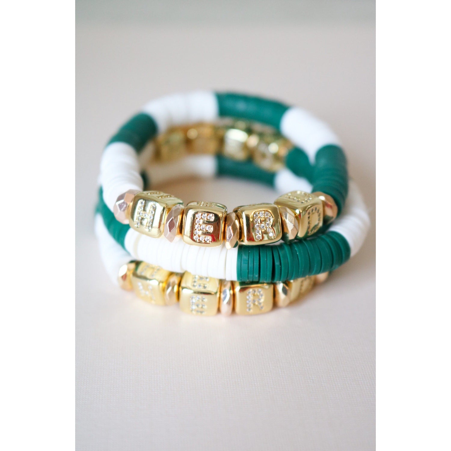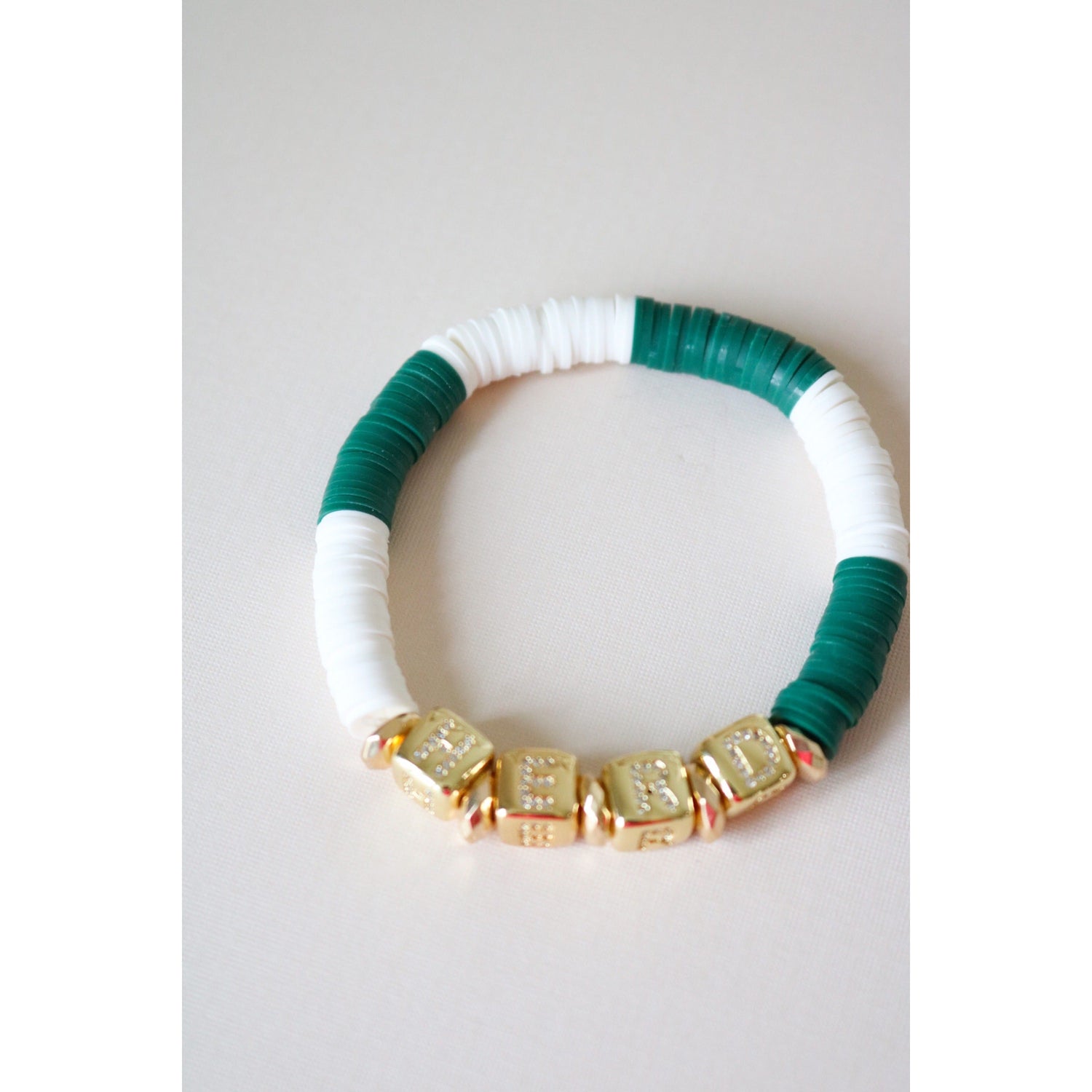 There's no place like your alma mater. This fun color block polymer clay stretch bracelet is a must-have to show your love of the Marshall Thundering Herd. Offered in a gorgeous color block pattern, this easy-to-wear and stack bracelet will be a game-day favorite.