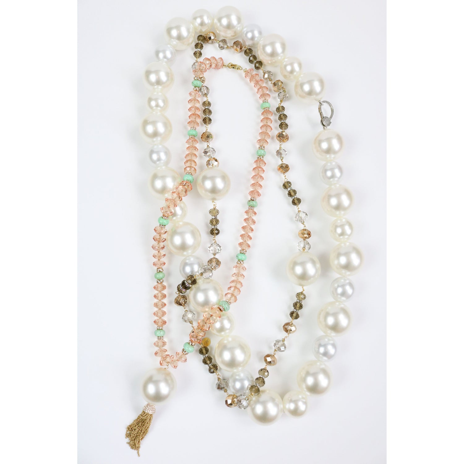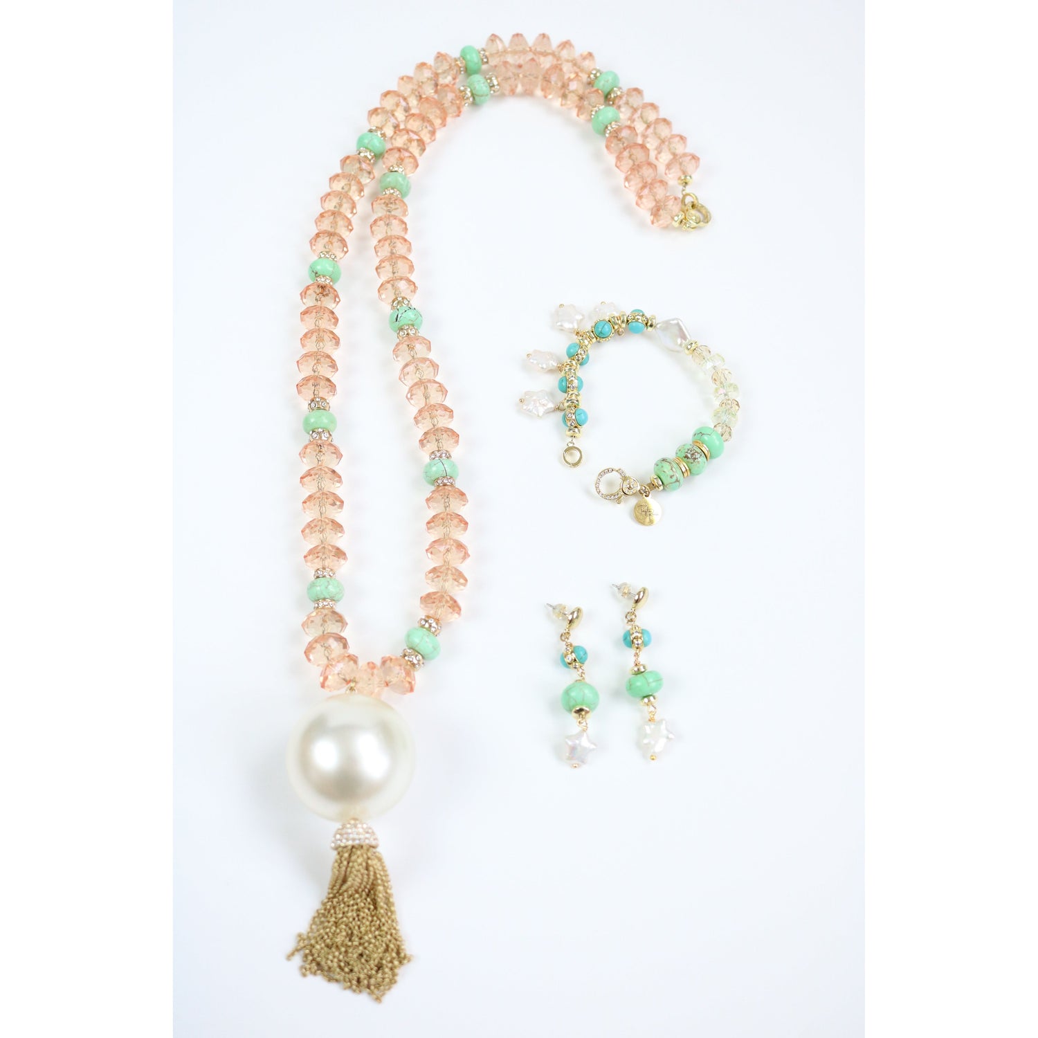 Peach Crystal Long Strand Necklace