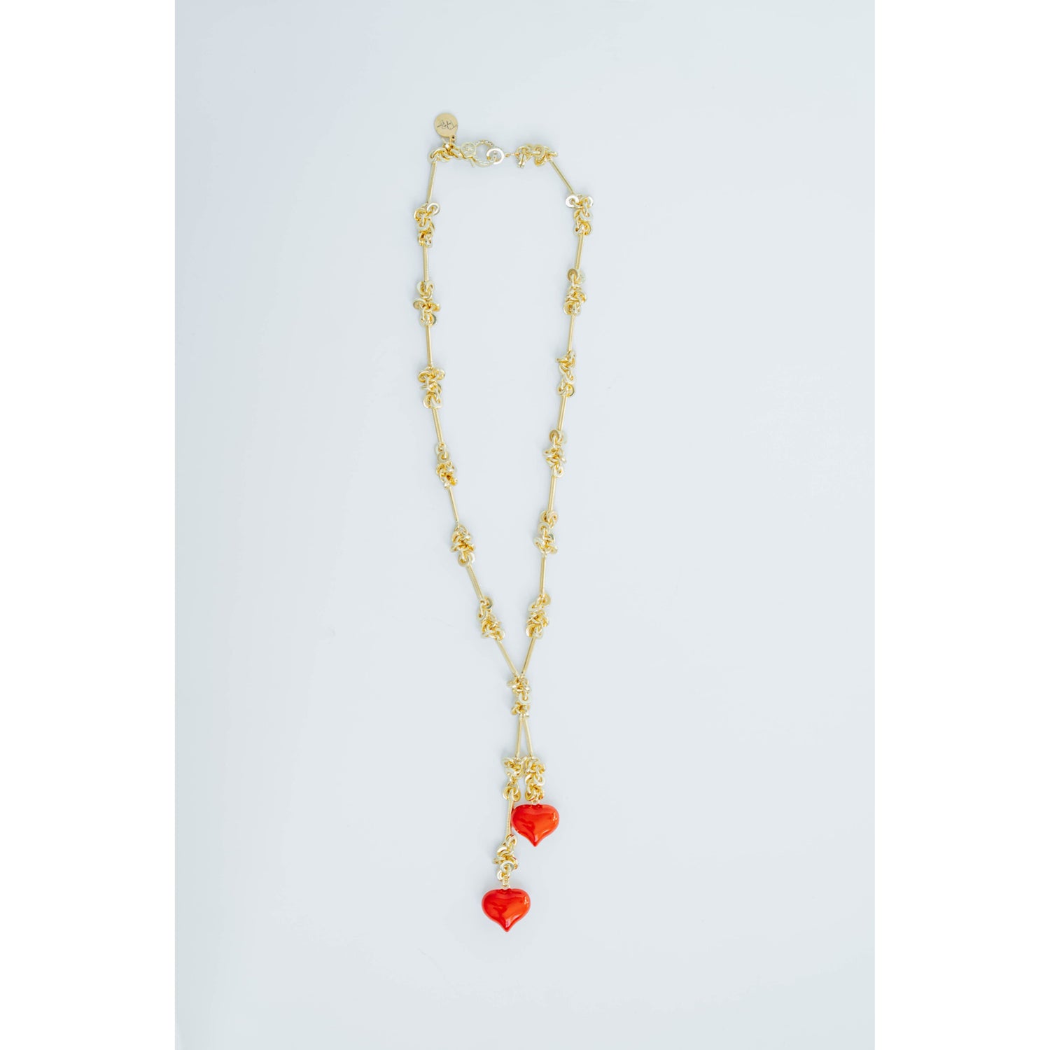 Crafted with a luxe 18k gold-filled chain, this necklace features twisted links that drip with vintage charm and modern drama. Two bold, enamel red heart charms dangle effortlessly at the center, symbolizing love in its fiercest and most fashionable form. Whether you’re layering it over a vintage tee or pairing it with an LBD, this piece is a heart-throb of epic proportions.