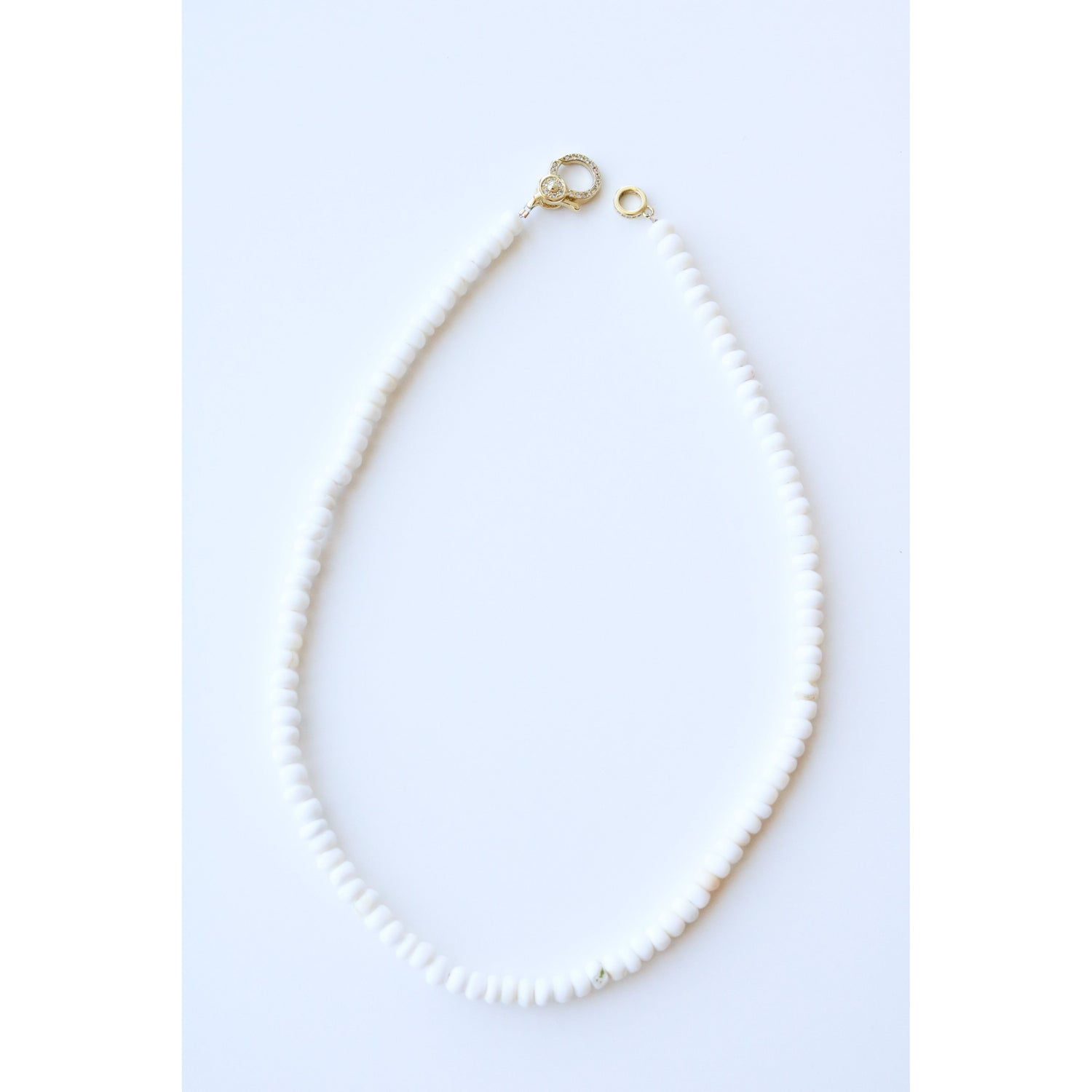 This beautiful, smooth, milky white fire opal gemstone necklace features a crisp opaque white coloring that is stunning. The single-layer strand makes it the perfect layering piece. We love it for graduation gifts, Easter, Mother's Day and spring break trips.