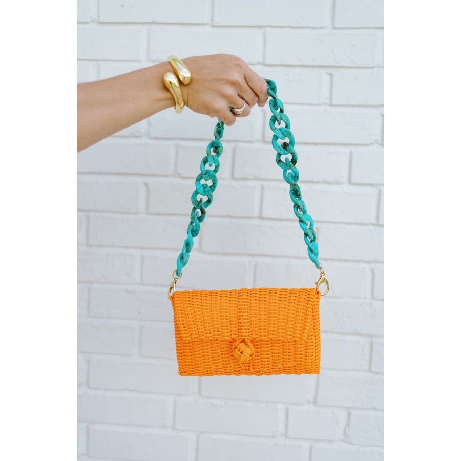 Warning: may cause spontaneous beach day cravings. Meet your summer plus-one: the TropiTwist resin strap, where vacation vibes meet everyday style. With turquoise marbling, this chunky chain strap feels like a salty breeze and a splash of something strong. It’s the bold, beachy upgrade your bag didn’t know it needed—until now.